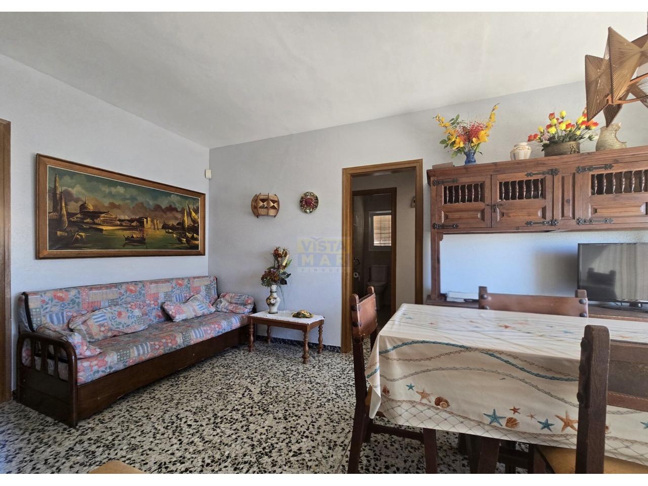 DescripciónPiso 2º de altura de 87m² construidos, orientado a 3 vientos, en zona de Marítimo. Distribuido en salón-comedorcon acceso a terraza de 8m² con vistas al mar, cocina independiente de 6m² con lavadero, 3 habitaciones (2 dobles con salida a balcón y 1 individual amplia) y baño completo reformado con plato de ducha. Dispone de ventanas de madera, suelos de terrazo. 1 plaza de parquing opcional (NO incluida en el precio final de venta). Finca en segunda línea de playa y cercana a transporte público, comercios y servicios. No tiene ascensor.